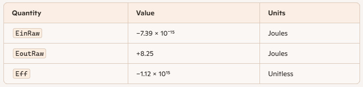 what each number physically means (Joules, Watts, average vs total),
